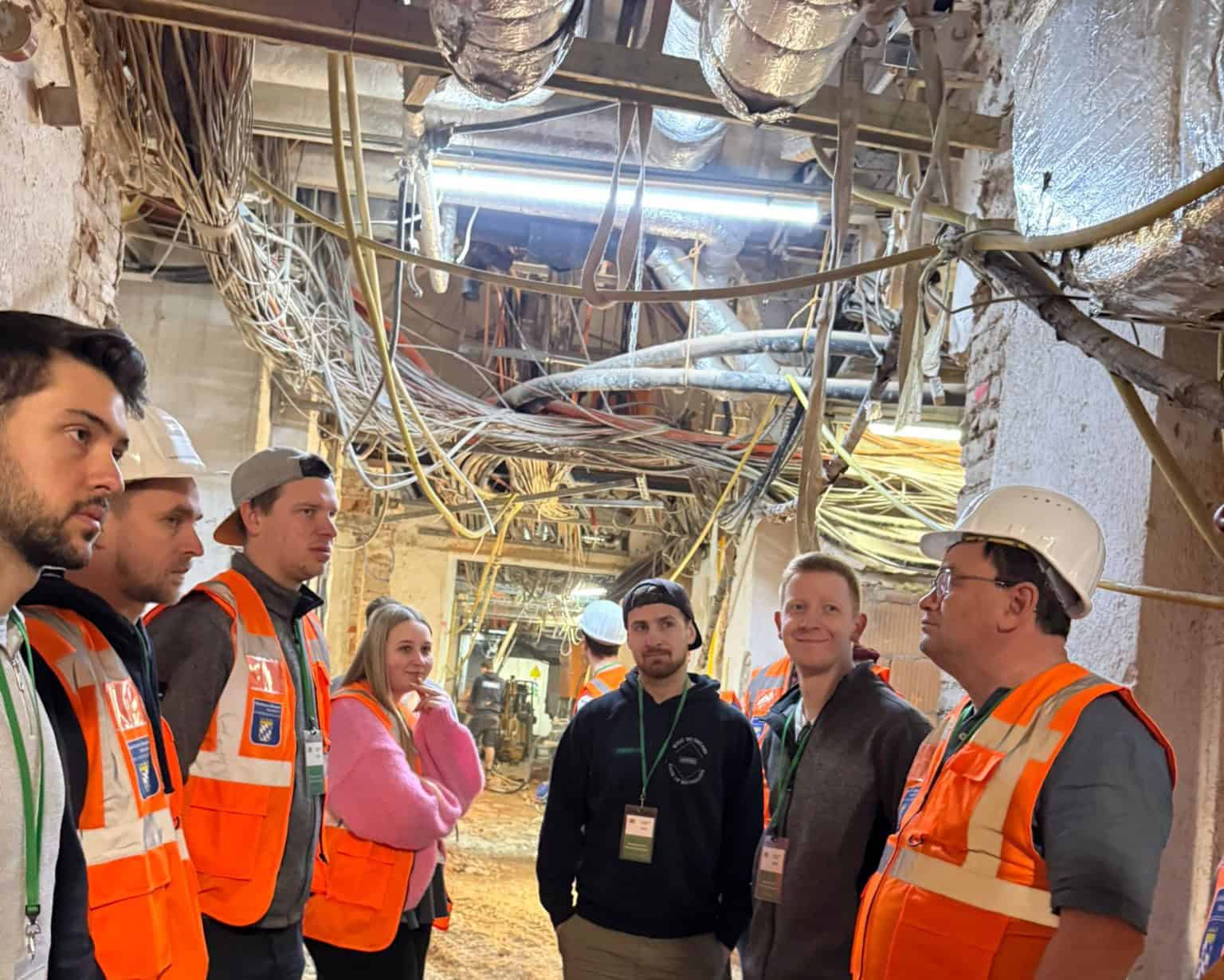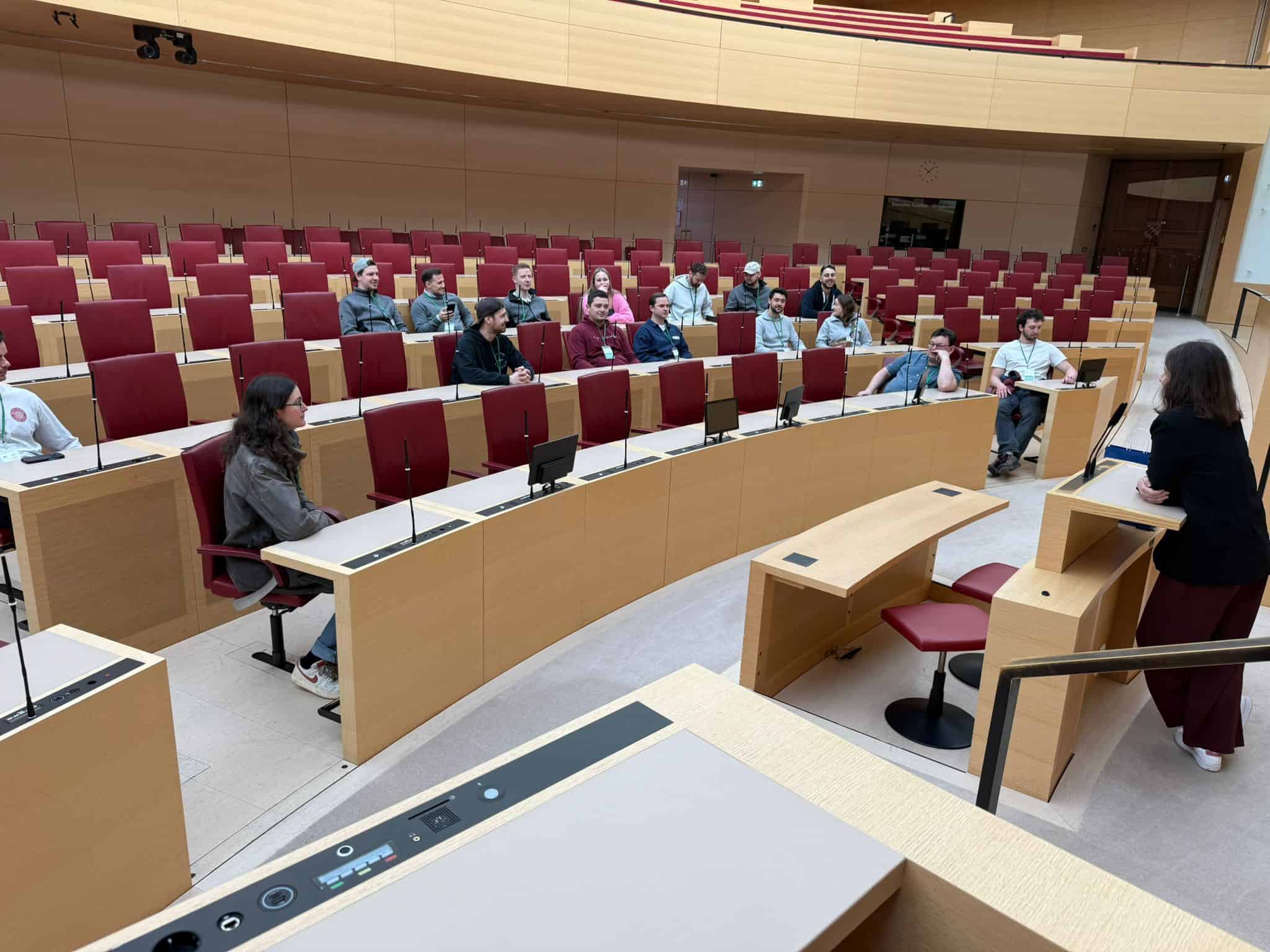 Am 6. März besuchte die BT2E den Bayerischen Landtag im Maximilaneum (erbaut bis 1874) und erhielt dabei Einblicke in die Geschichte und Architektur des Gebäudes. Im Anschluss folgte eine Baustellenbesichtigung der Modernisierungsarbeiten in den Untergeschossen. Der Freistaat Bayern investiert hier ca. 187 Mio. Euro bis zur Fertigstellung im Jahr 2032. Dabei wurden uns aktuelle Maßnahmen zur technischen Erneuerung, statischen Sicherung und zum Bauen im denkmalgeschützten Bestand erläutert. Die Kavernen/Katakomben werden/wurden bereits freigelegt, teilweise statisch verstärkt. Die so entschehenden Räumlichkeiten sollen u. a. für eine neue und effiziente Technikzentrale genutzt werden. Diese kurzweilige Exkursion verband wunderbar Informationen zu Historie und Demokratie mit praxisnahen, bautechnischen Eindrücken!