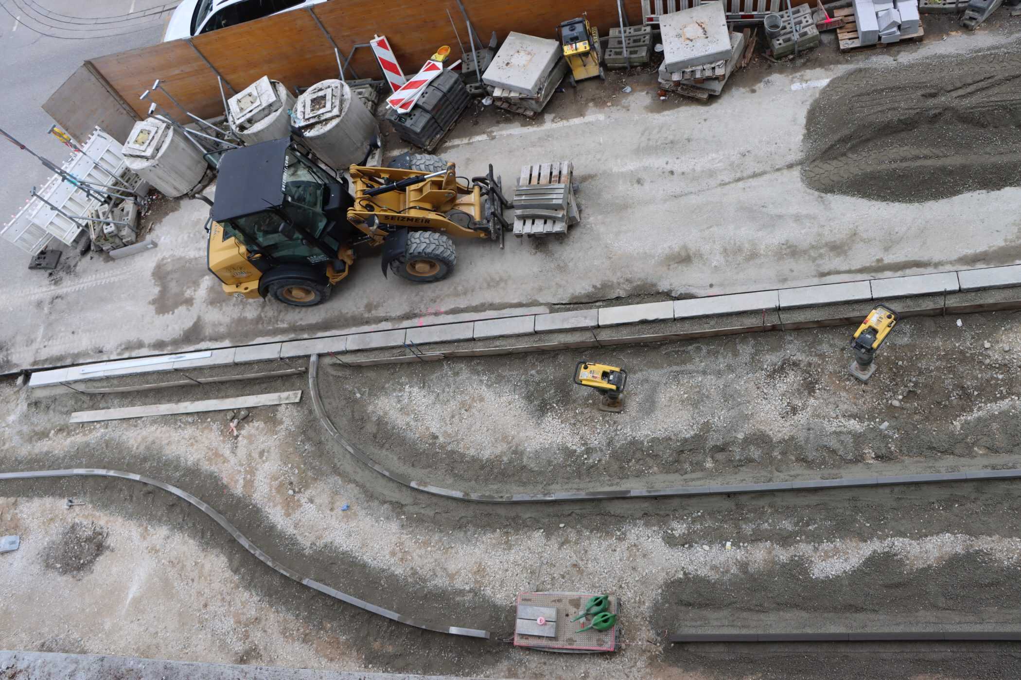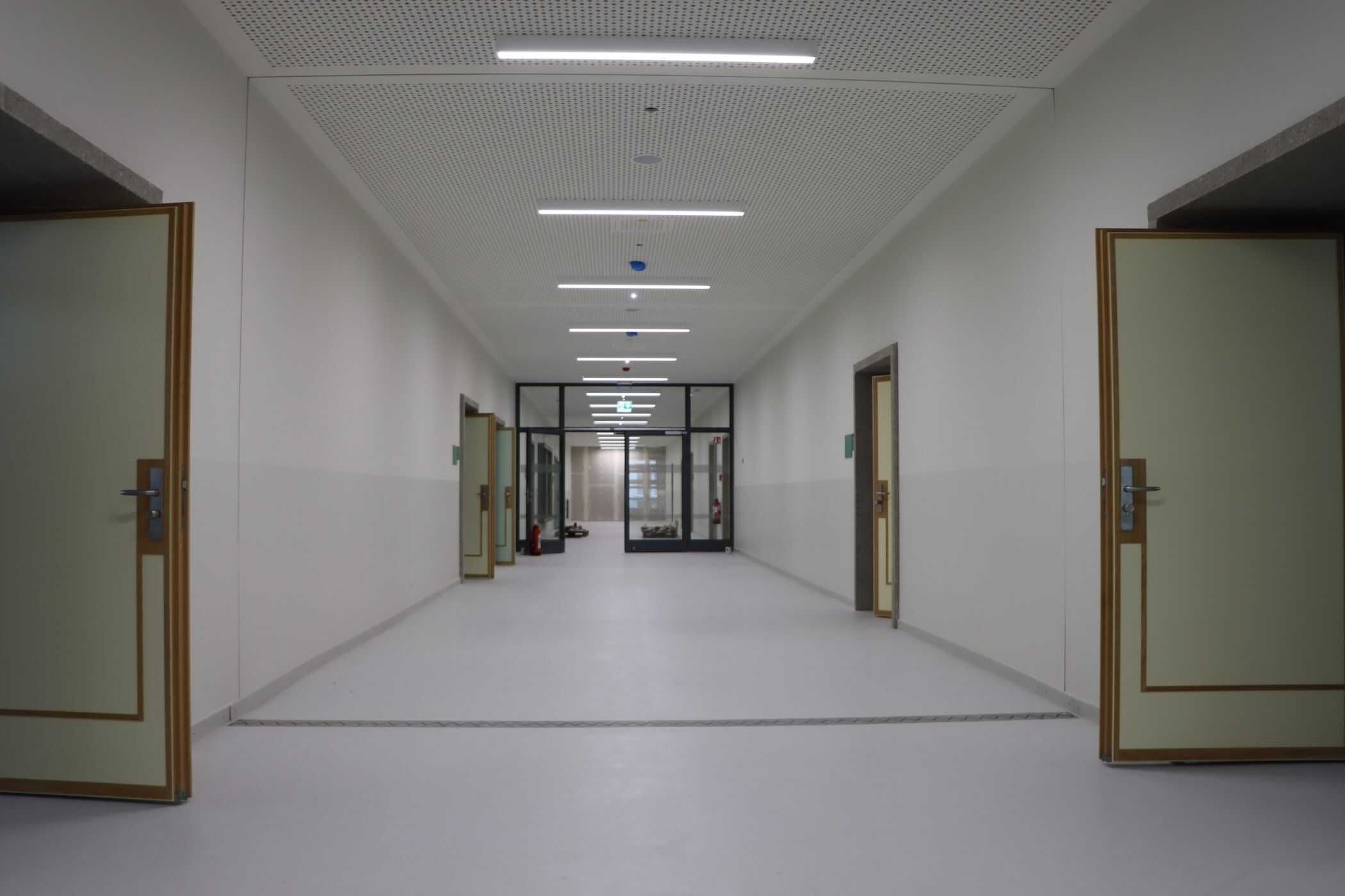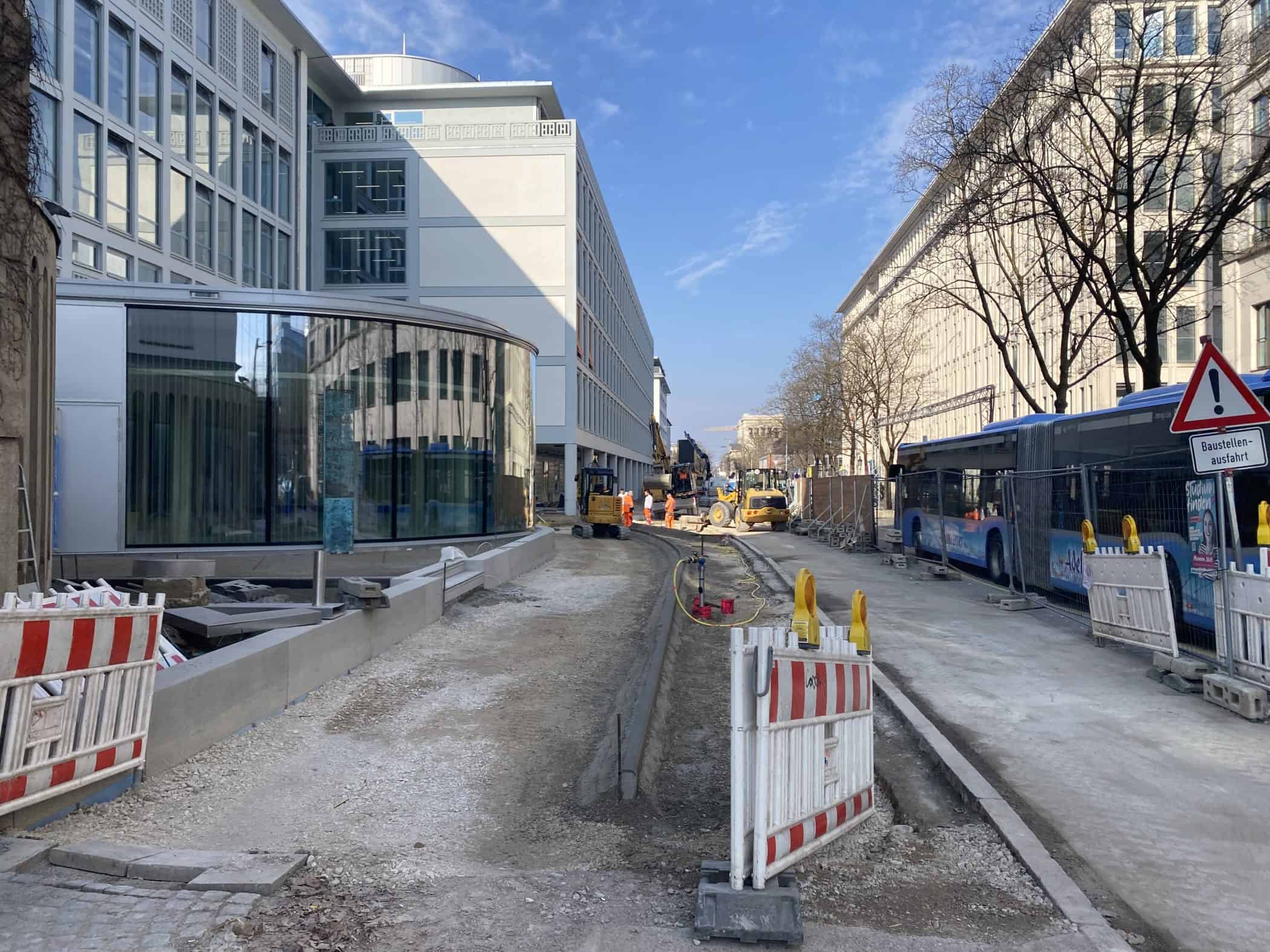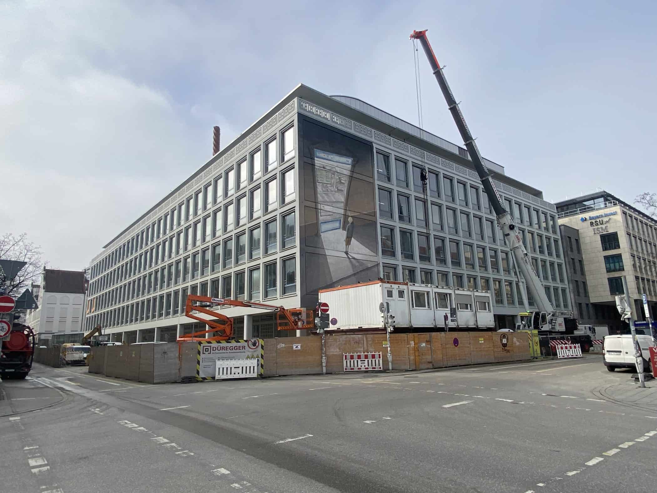 Hier sehen Sie, laufend aktualisiert und in Auszügen, den Fortschritt der Arbeiten im Jahr 2026. Eigentlich sollte es dieses Kalenderjahr in der Chronik der Generalsanierung gar nicht geben, aber vielschichtige Verzögerungen sorgen dafür, dass auch im 125. Jahr seit Eröffnung bau- und kunsthandwerklicher Schulen an diesem Standort noch einige Arbeiten zu begleiten sind. Im Gebäudeteil E findet endlich wieder auf allen Ebenen der Praxisunterricht für Berufs- und Meisterschule statt und somit ist das Kollegium auch endlich wiedervereint! Die Sheddachhalle bekam bis Februar ebenfalls einen Parkettboden. Die Arbeiten an den Außenanlagen (Pflaster, Geh-/Radwege, Brunnen, etc.) sind noch nicht ganz abgeschlossen Mitte März. Als sichtbares Zeichen der Verzahnung von Theorie und Praxis wurde am 18. März der Übergang zwischen Bauteil D und E im 2. OG wieder installiert. Im Gebäude gibt es noch an vielen Stellen „Startschwierigkeiten“, aber der Grundtenor sagt: Wir freuen uns auf ein positives Ende!