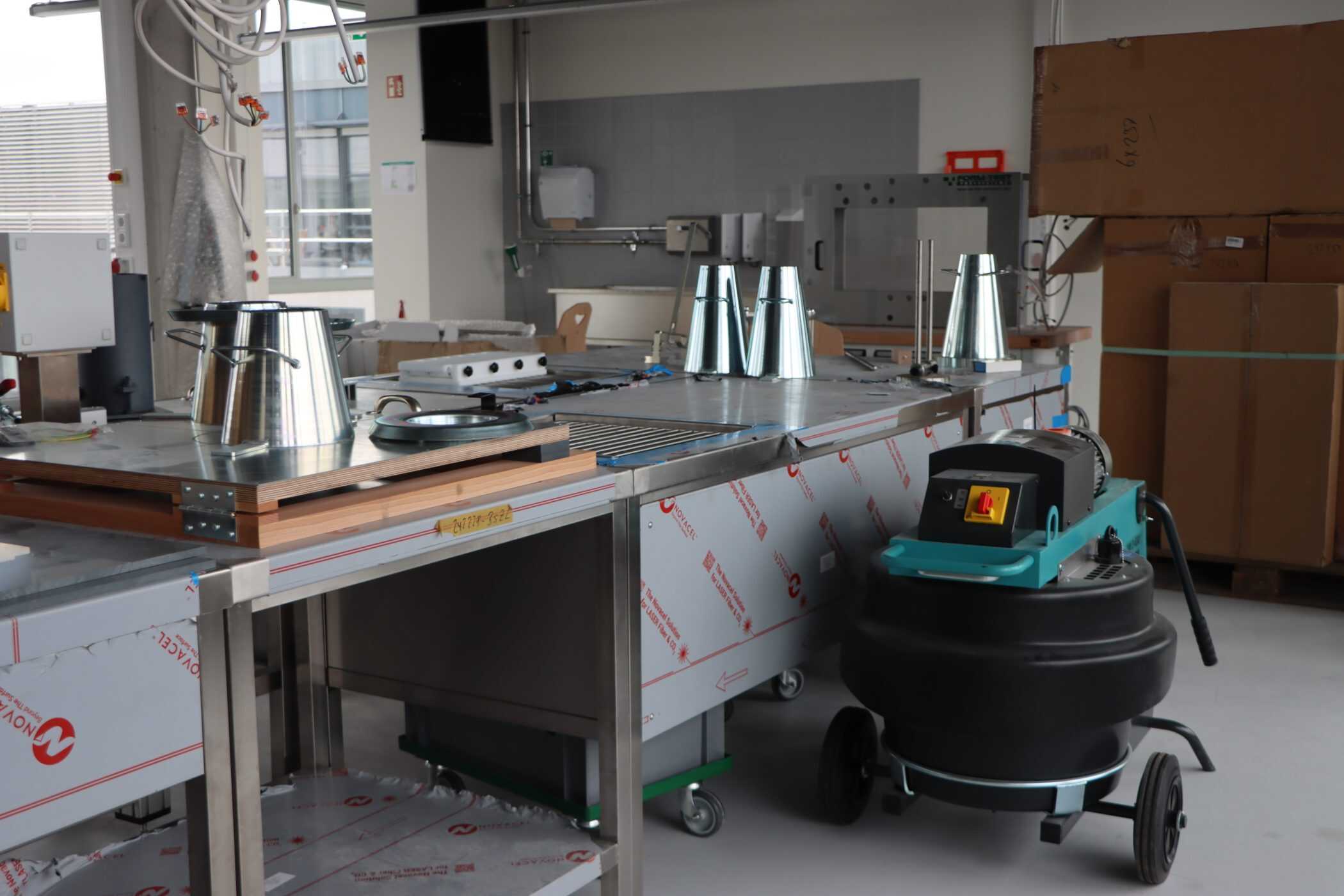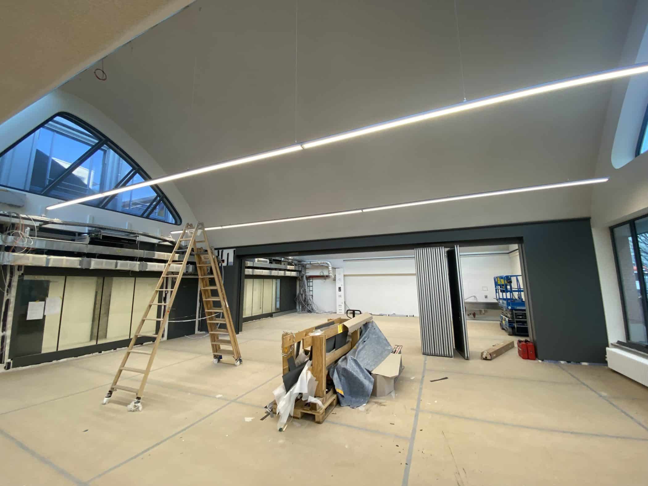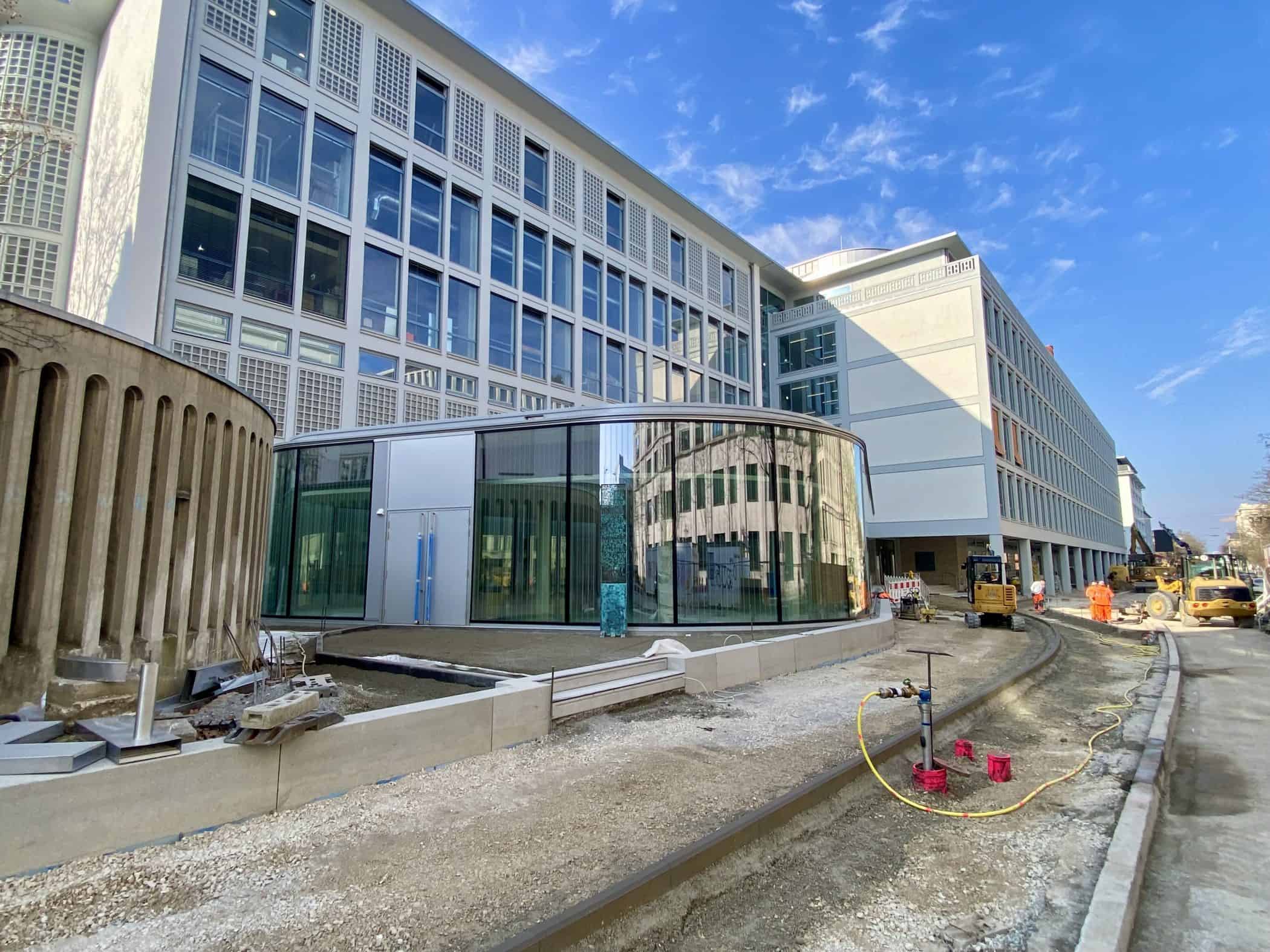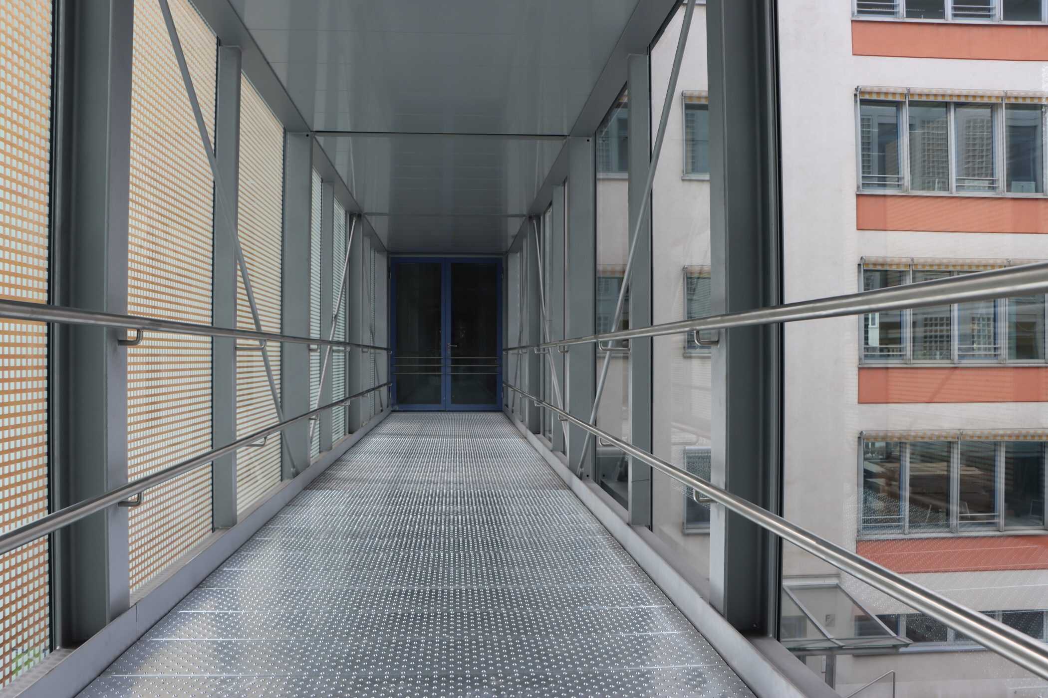 Hier sehen Sie, laufend aktualisiert und in Auszügen, den Fortschritt der Arbeiten im Jahr 2026. Eigentlich sollte es dieses Kalenderjahr in der Chronik der Generalsanierung gar nicht geben, aber vielschichtige Verzögerungen sorgen dafür, dass auch im 125. Jahr seit Eröffnung bau- und kunsthandwerklicher Schulen an diesem Standort noch einige Arbeiten zu begleiten sind. Im Gebäudeteil E findet endlich wieder auf allen Ebenen der Praxisunterricht für Berufs- und Meisterschule statt und somit ist das Kollegium auch endlich wiedervereint! Die Sheddachhalle bekam bis Februar ebenfalls einen Parkettboden. Die Arbeiten an den Außenanlagen (Pflaster, Geh-/Radwege, Brunnen, etc.) sind noch nicht ganz abgeschlossen Mitte März. Als sichtbares Zeichen der Verzahnung von Theorie und Praxis wurde am 18. März der Übergang zwischen Bauteil D und E im 2. OG wieder installiert. Im Gebäude gibt es noch an vielen Stellen „Startschwierigkeiten“, aber der Grundtenor sagt: Wir freuen uns auf ein positives Ende!